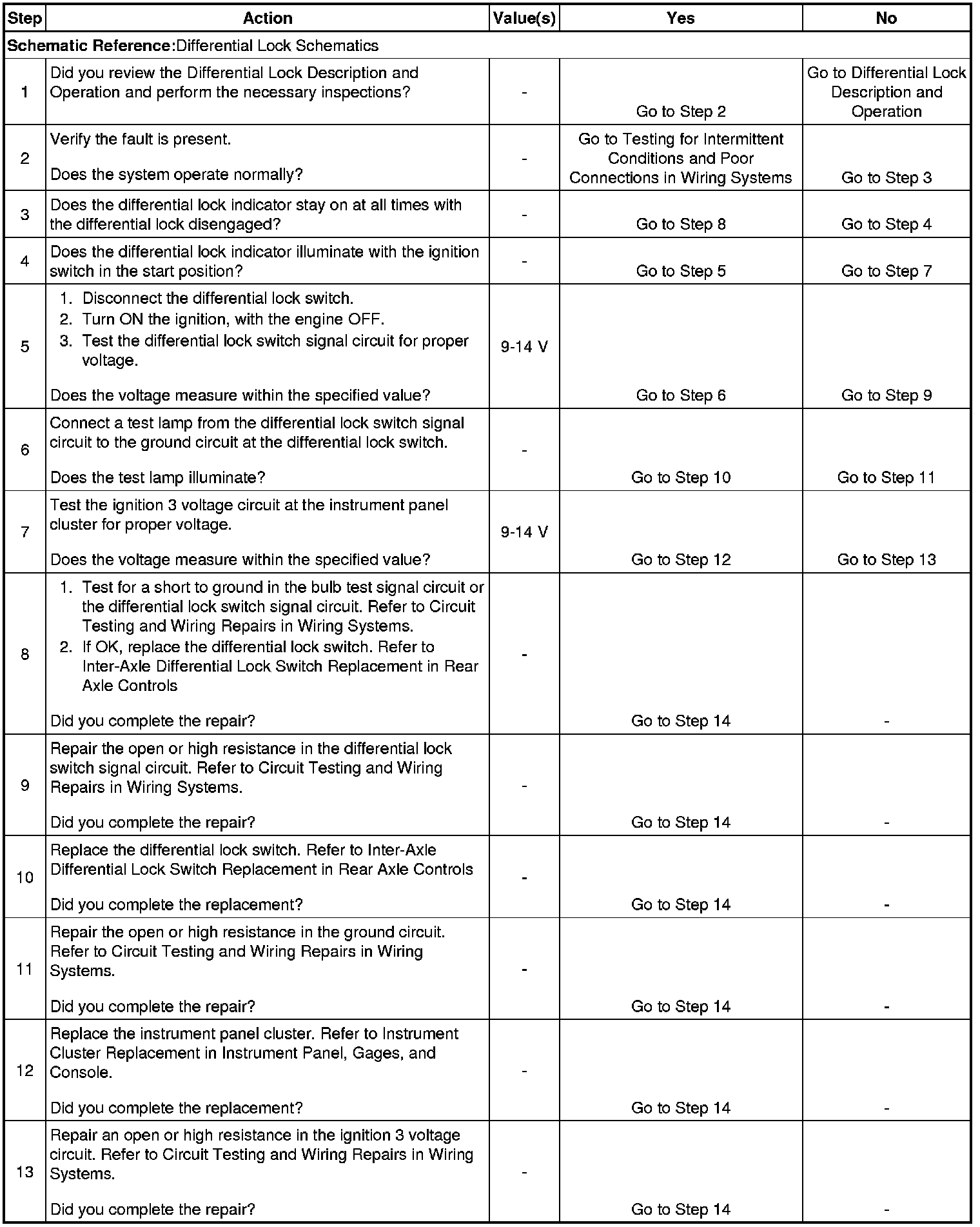 5. This step tests the differential lock switch signal for proper voltage.