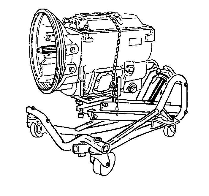 Important: When removing or installing the transmission, use a transmission dolly jack in order to support the weight of the transmission. Fasten a safety chain over the top of the transmission and to both sides of the dolly.