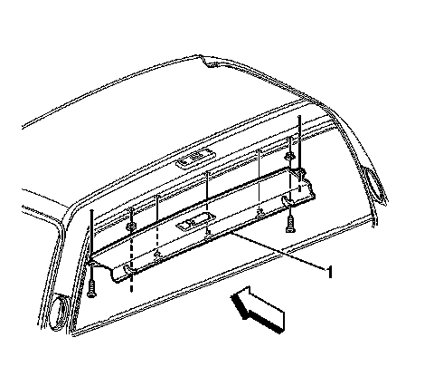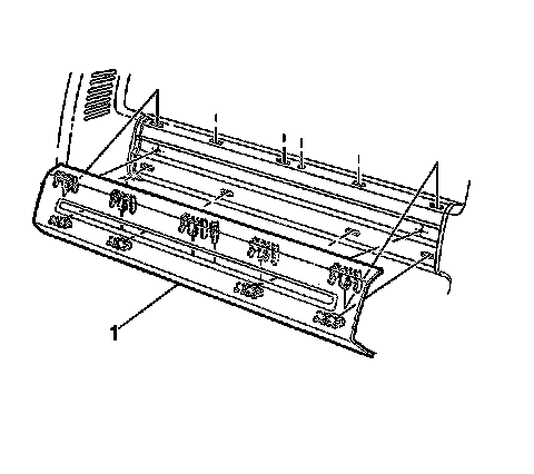 4. Remove the rear window lower molding (1) by prying the rear window lower molding up and off the retainers.