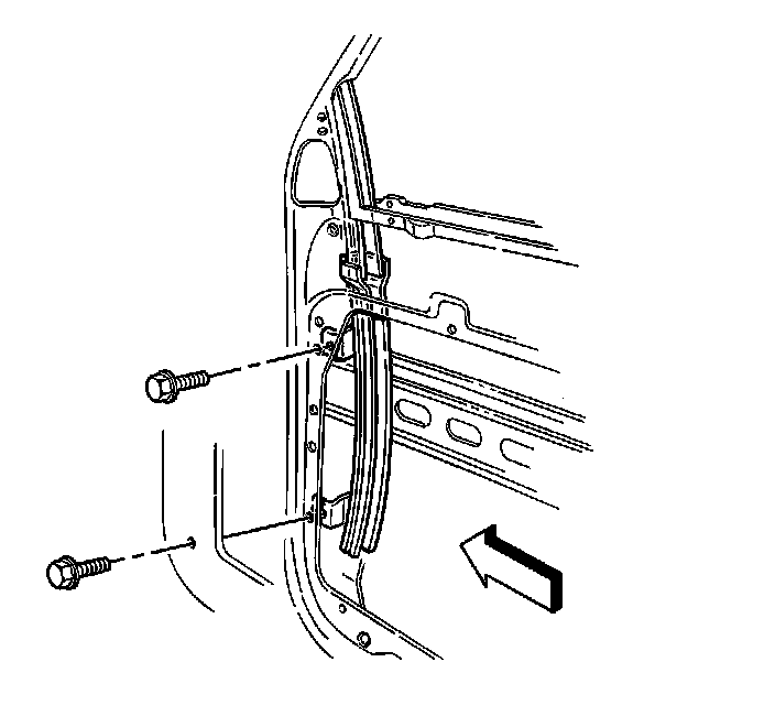 5. Install the water deflector. Refer to Door Water Deflector Replacement Door Water Deflector Replacement.