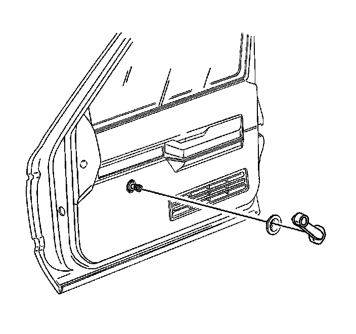2. Align the tool parallel with the door handle, and push in order to disengage the clip (2).
