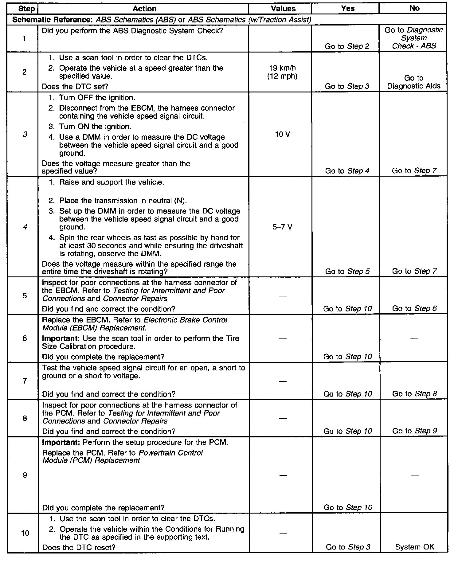 The PCM converts the data from the vehicle speed sensor to a 128k pulses/mile signal. The EBCM uses the vehicle speed signal from the PCM in order to calculate the rear wheel speed.
