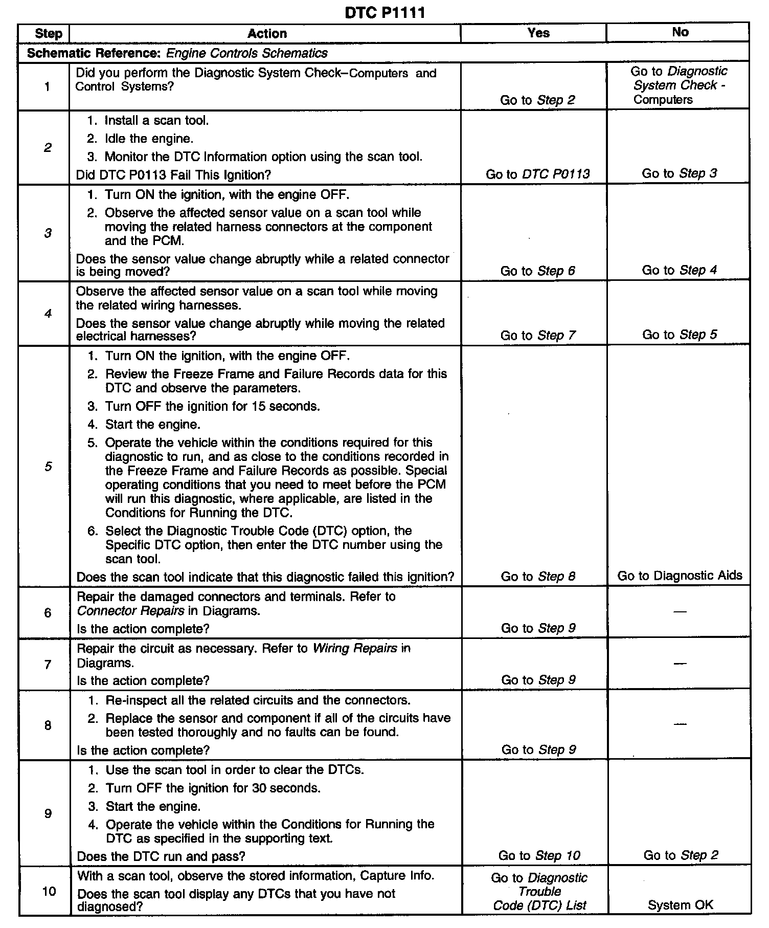 2. If DTC P0113 failed this ignition, this indicates a hard failure is present. When a hard failure is present, both the hard and intermittent DTCs set.