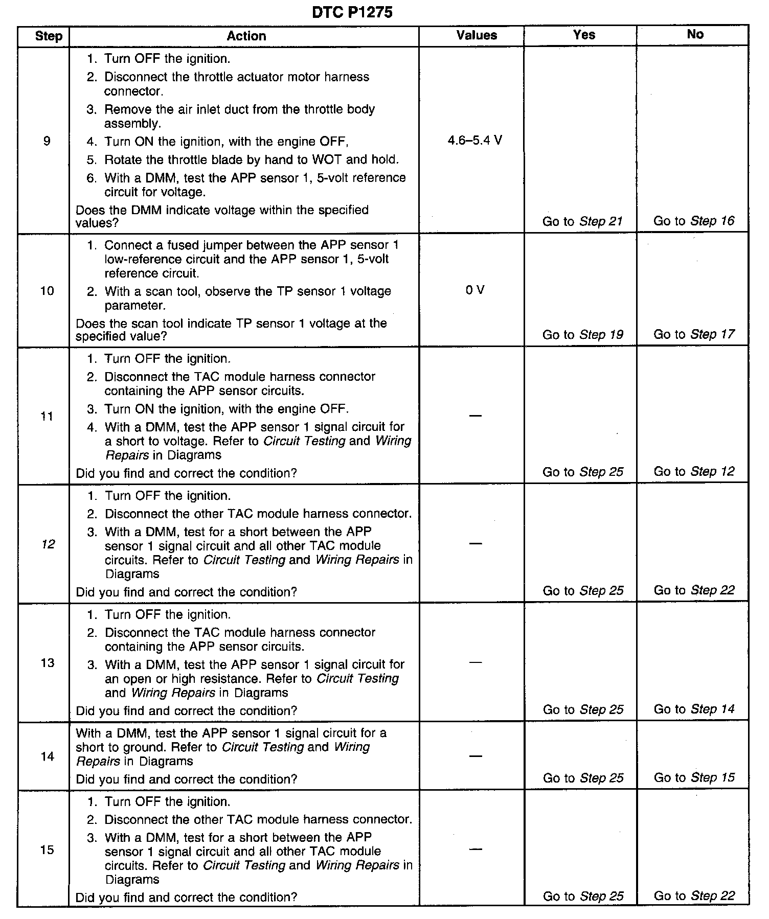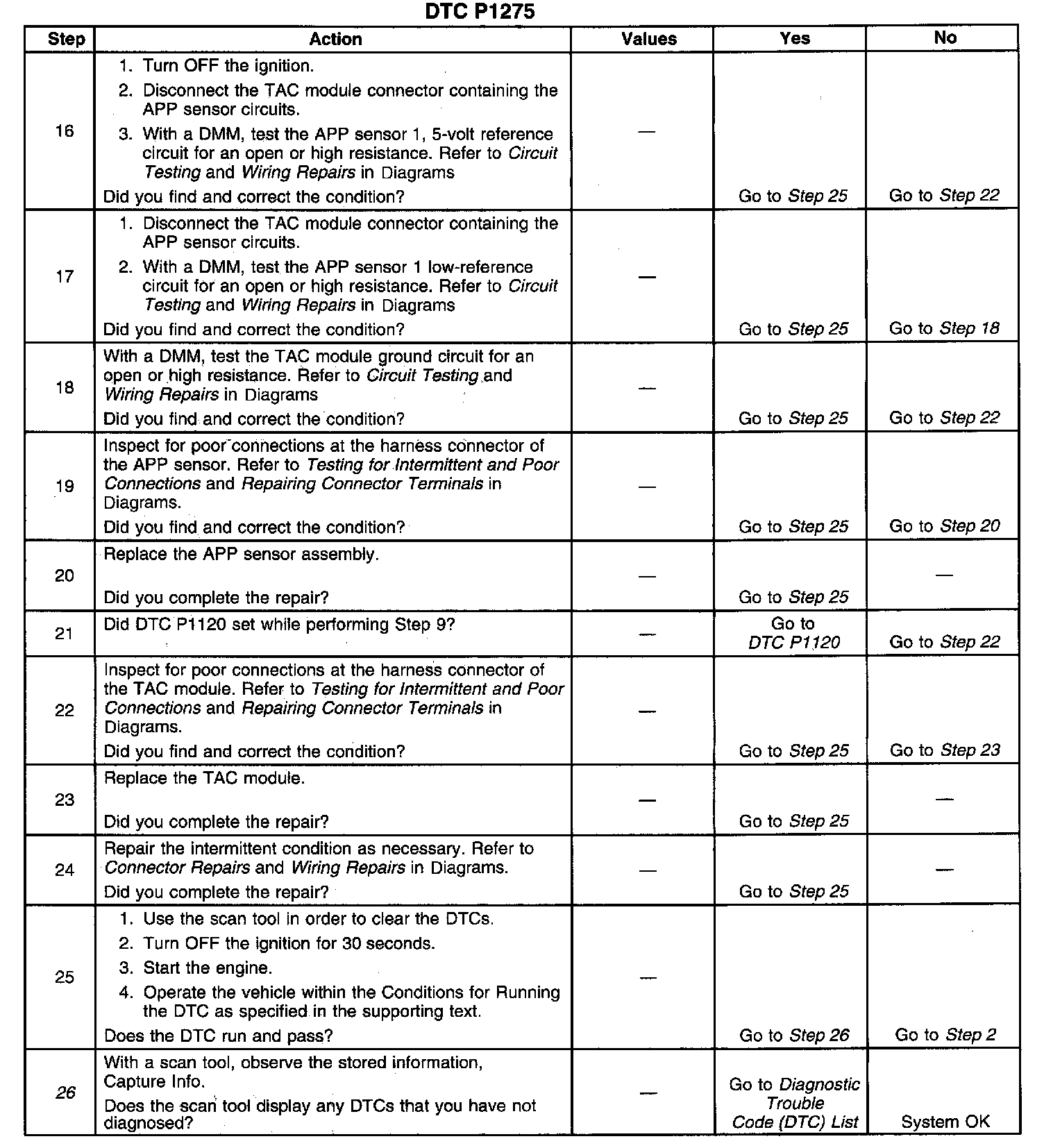 ^ When the TAC module detects throttle movement with a DTC P1275 set, a DTC P1276 also sets.