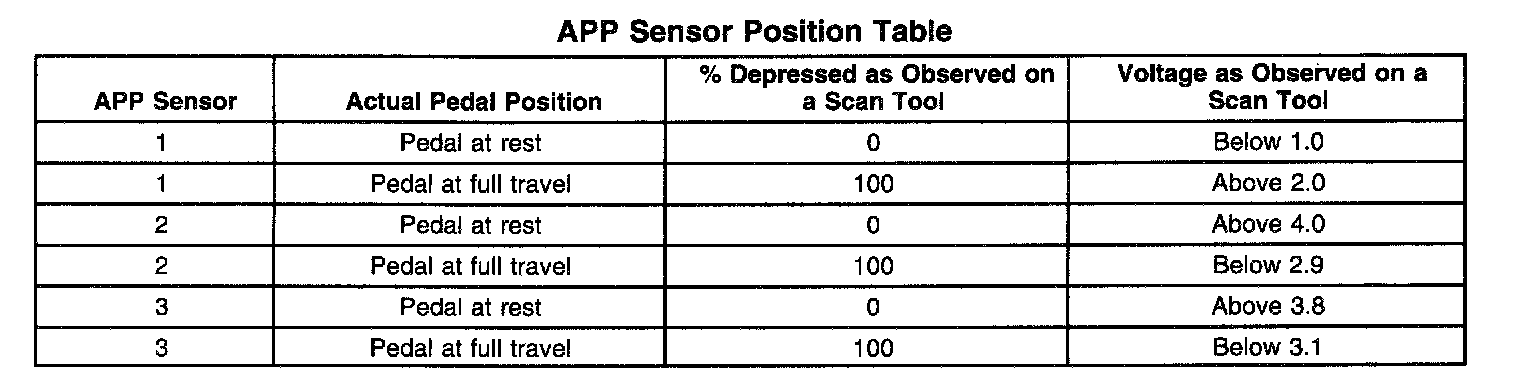 ^ APP sensor 1 disagrees with APP sensor 2 by more than 10.5 percent and APP sensor 1 disagrees with APP sensor 3 by more than 13.0 percent.