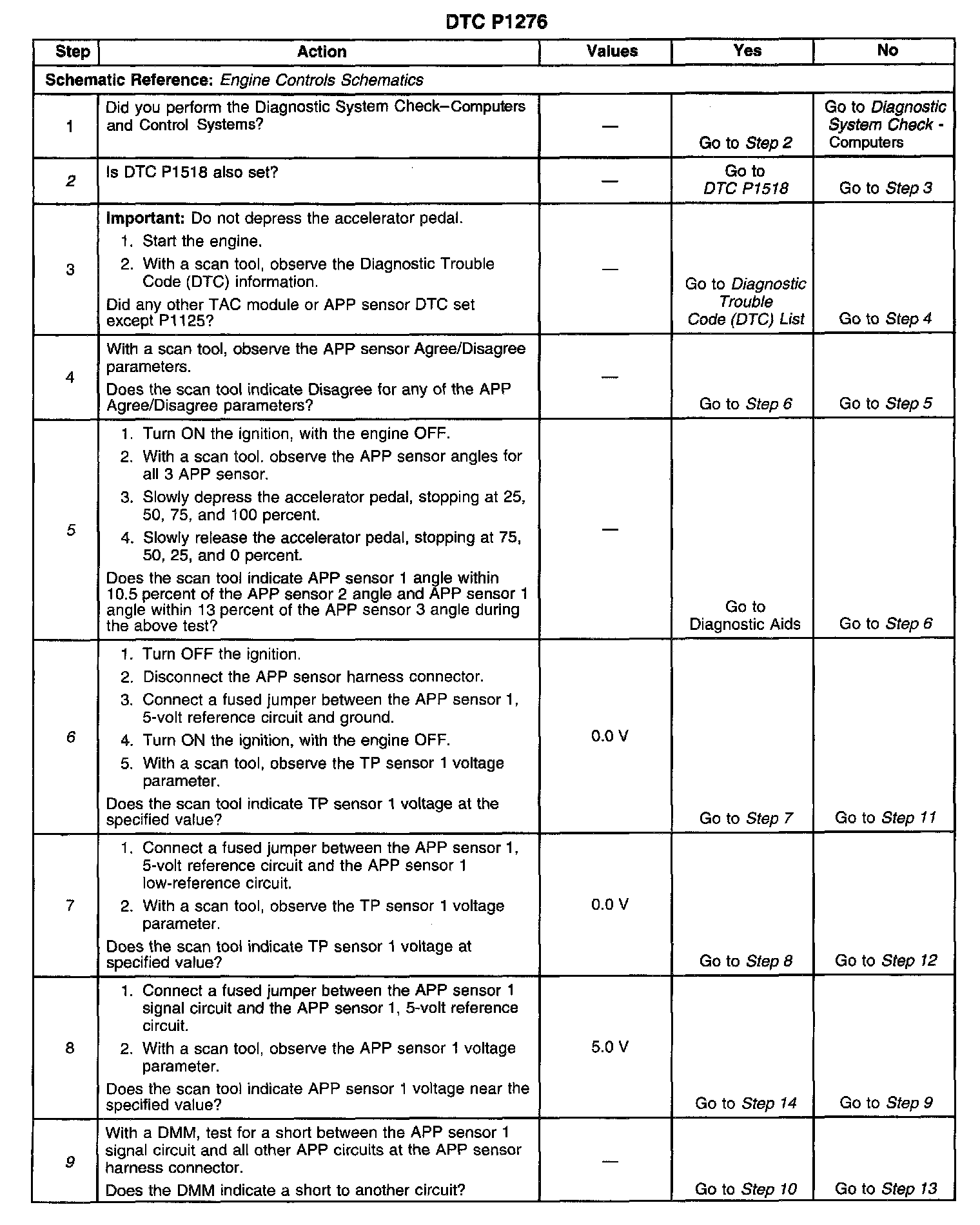^ When the TAC module detects throttle movement with a DTC P1275 set, a DTC P1276 also sets.