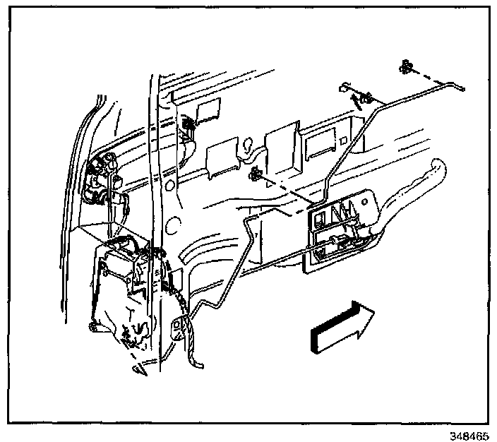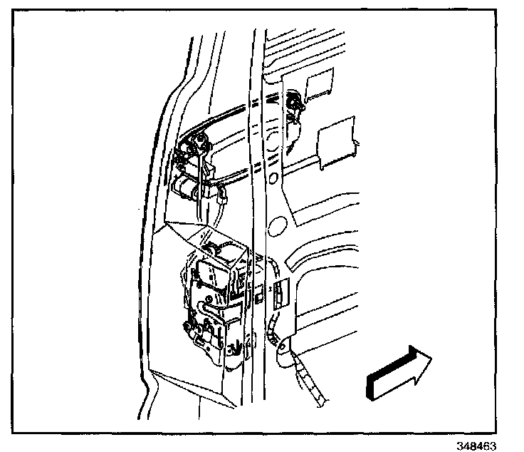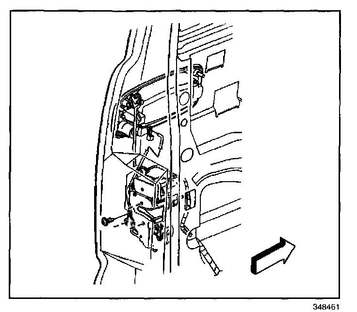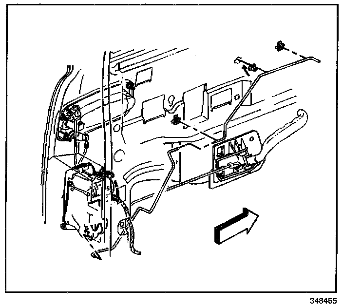 9. Remove the door lock actuator and control rods as an assembly.