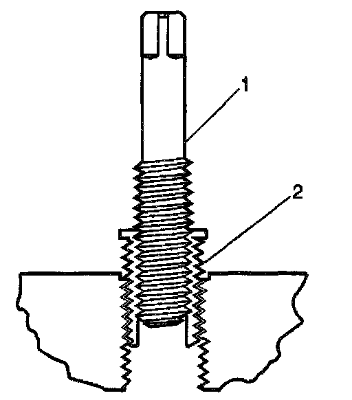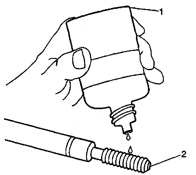 11. Apply threadlock Loctite 277, J 42385-109 (1), or equivalent to the insert OD threads (2).