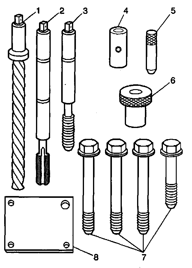 Cylinder Head Bolt Hole Thread Repair1. The cylinder head bolt hole thread repair kit consists of the following items: