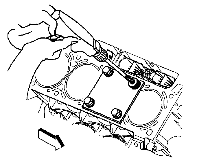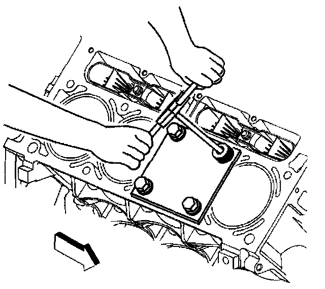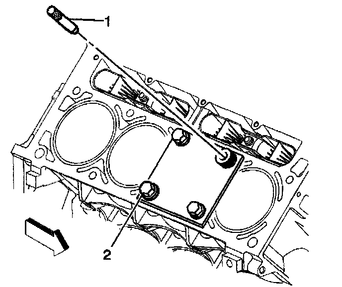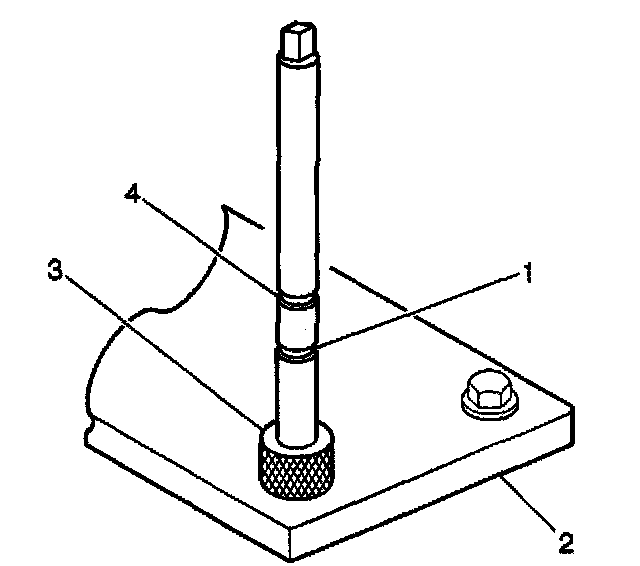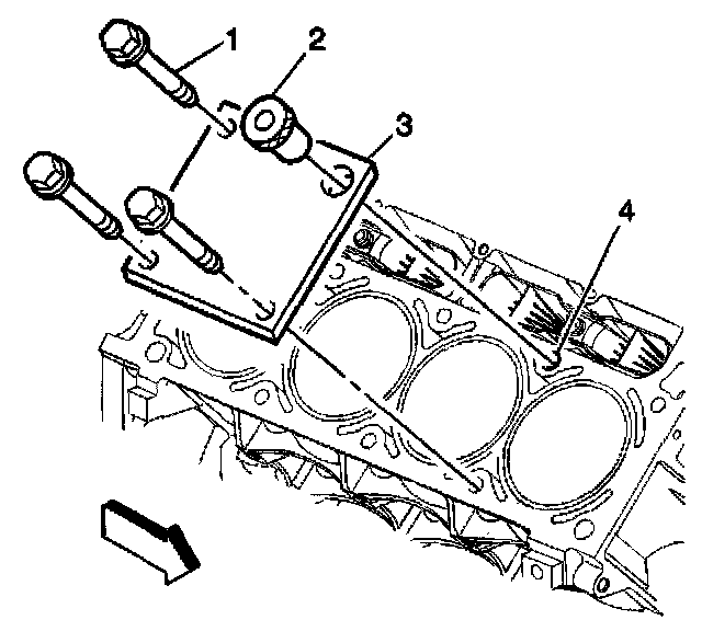 2. Install the fixture plate (3), bolts (1), and bushing (2) onto the engine block deck.