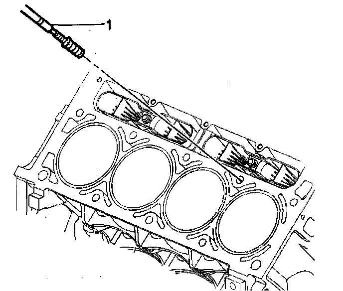 19. Install the insert and driver (1) into the hole. Rotate the driver tool until the mark on the tool aligns with the deck surface of the engine block. The installer tool will tighten up before screwing completely through the insert. This is acceptable. You are forming the bottom threads of the insert and mechanically locking the insert to the base material threads.