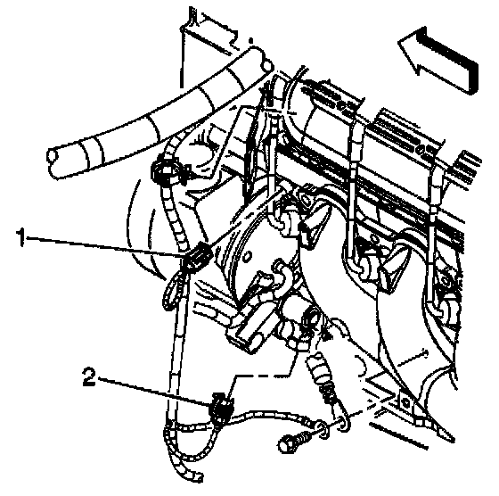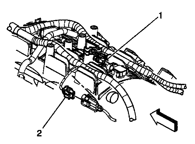 56. Connect the MAP sensor (1) and knock sensor (2) electrical connectors.