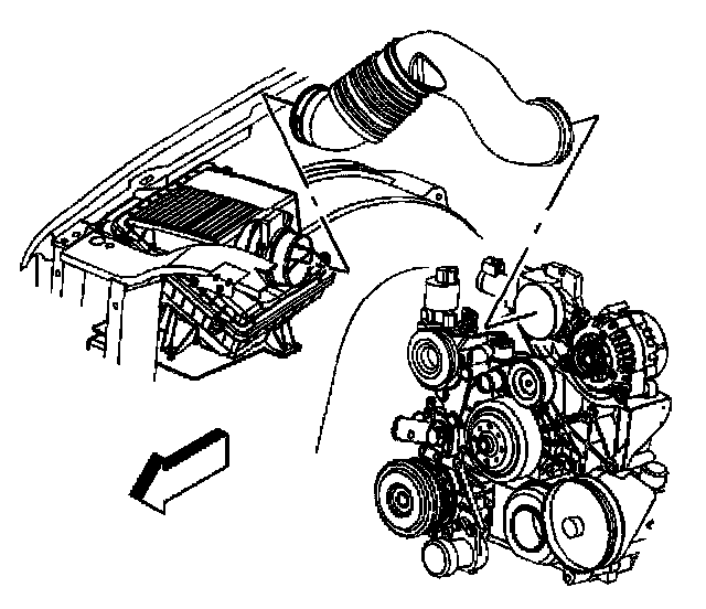 Important: Align the arrow at the throttle body end of the duct with the throttle body attaching stud.
