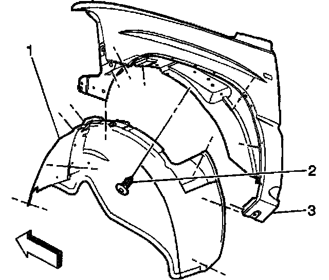 6. Install the left front fender wheelhouse inner panel (1).