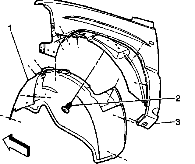 1. Remove the left front fender wheelhouse inner panel (1).