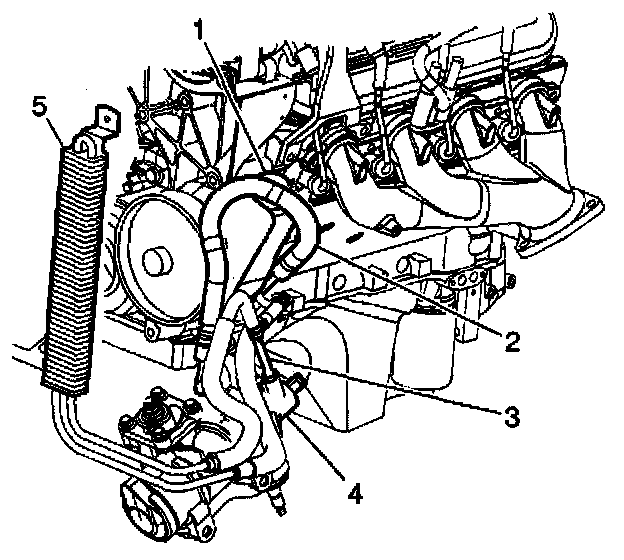 3. Connect the power steering inlet hose to the power steering pump (5).