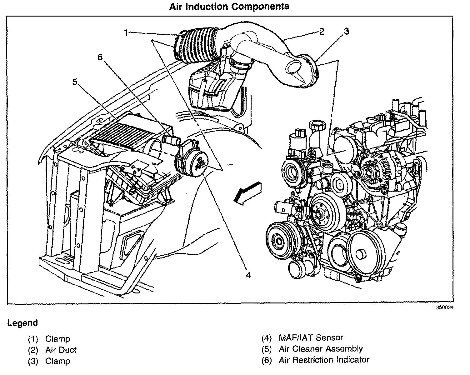 The air cleaner assembly is remotely mounted. The air intake system draws outside air through the side of the air cleaner assembly and filter element of the forward mounted air cleaner. The air is then routed through the Mass Air Flow (MAF) sensor and then into the throttle body to the intake manifold. The air is then directed into the intake manifold runners, through the cylinder heads and into the cylinders.