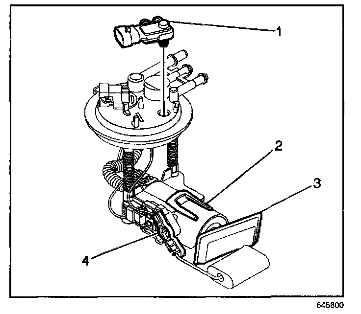 The fuel tank stores the fuel supply. An electric fuel pump, located in the fuel tank with the fuel sender assembly, pumps fuel through an in-line fuel filter to the fuel rail assembly. The pump provides fuel at a higher pressure than is needed by the injectors. The fuel pressure regulator, part of the fuel rail assembly, keeps fuel available to the injectors at a regulated pressure. A separate pipe returns the unused fuel to the fuel tank.