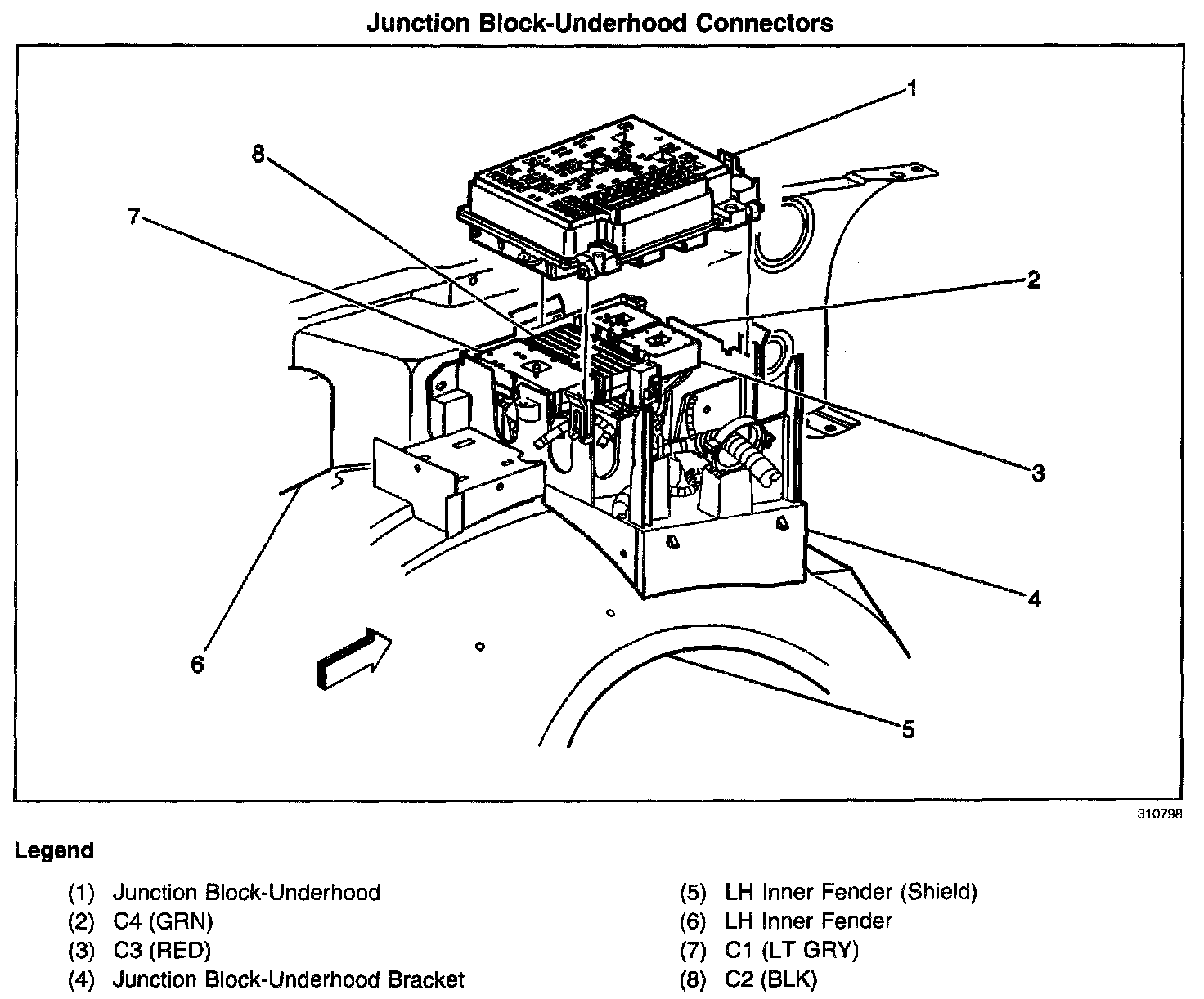 The Fuel Pump Relay is located in the Junction Block - Underhood. The Junction Block - Underhood is located at the left side of the engine compartment near the battery.