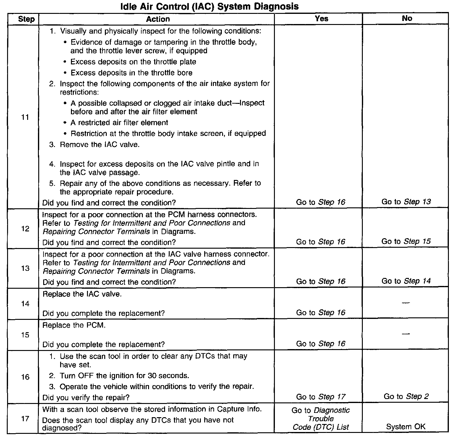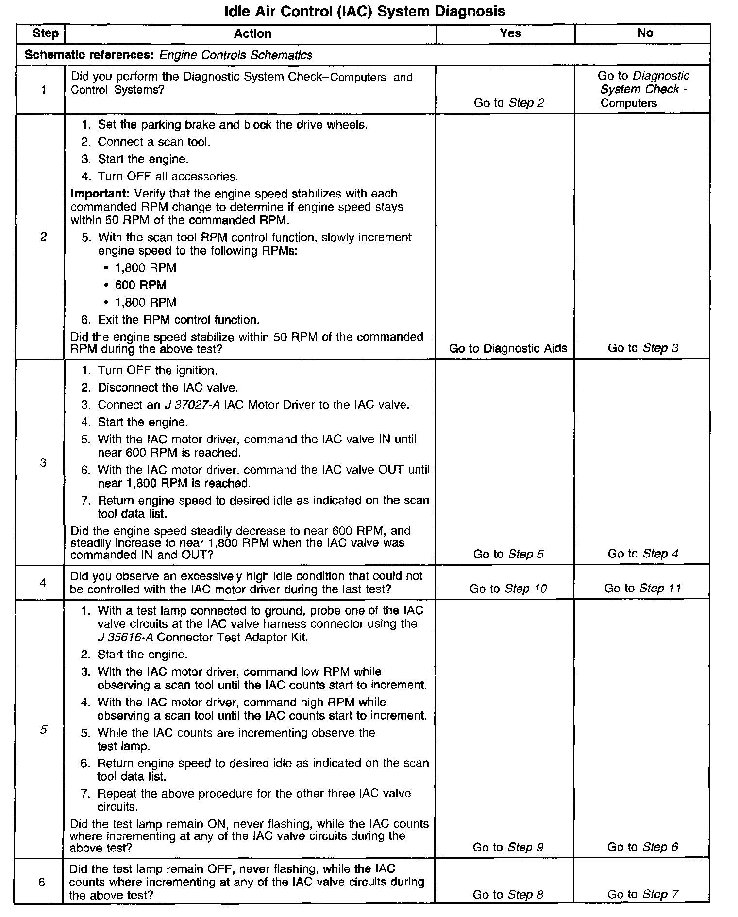 ^ A low or unstable idle condition-This condition could be caused by a non-IAC system problem that can not be overcome by the IAC valve. refer to Symptoms - Computers and Control Systems. Symptom Related Diagnostic Procedures