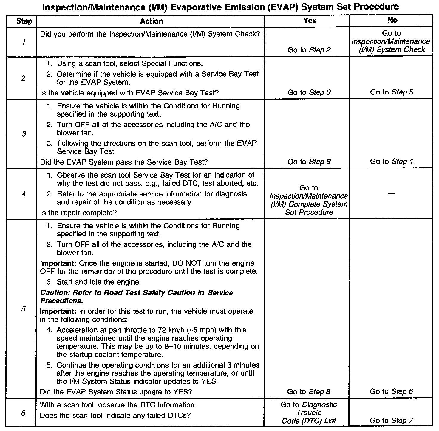 8. The I/M System Status only reports on whether or not a diagnostic has run, not the outcome of the test. If any emission-related DTC sets after the tests are complete, the DTC will require diagnosis.