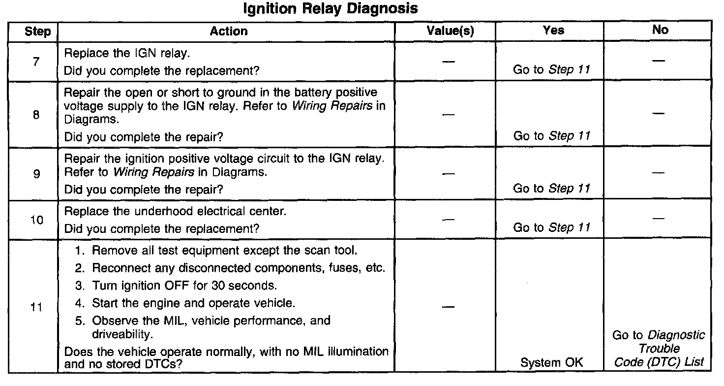5. This step isolates the circuit from the IGN relay. All of the circuits at the relay are good if the test lamp illuminates.