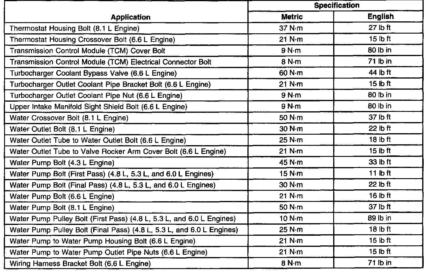 Fastener Tightening Specifications