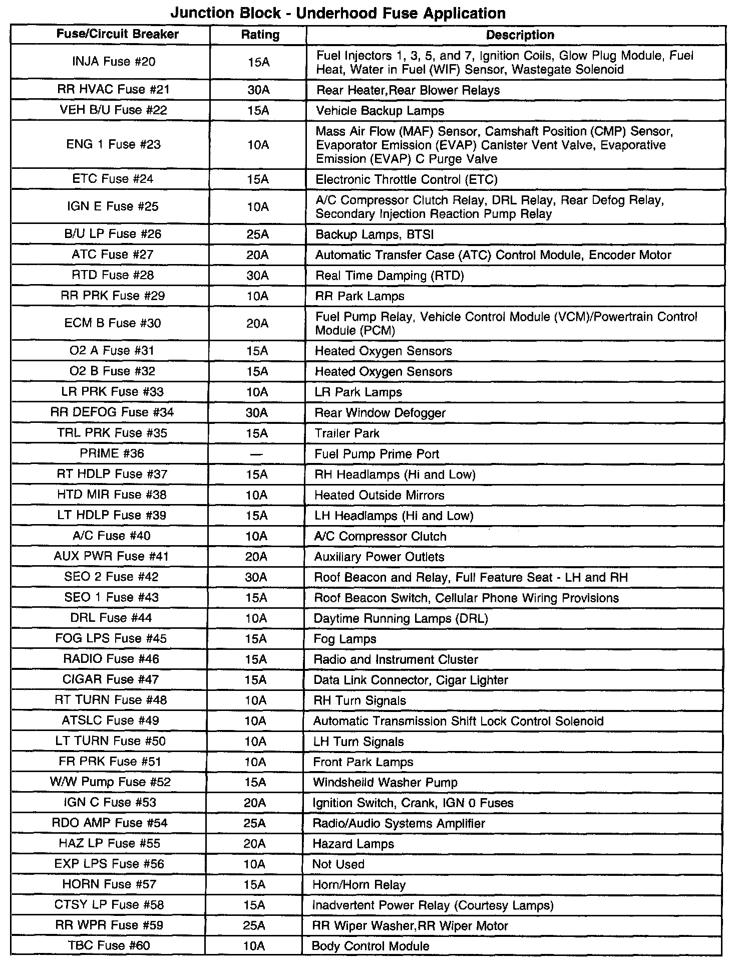 Junction Block - Underhood Fuse Application (Part 2 Of 2):