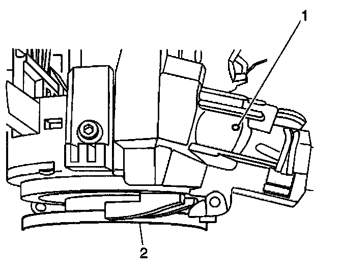 5. Using an awl, insert the tip into the ignition lock cylinder access hole (1).