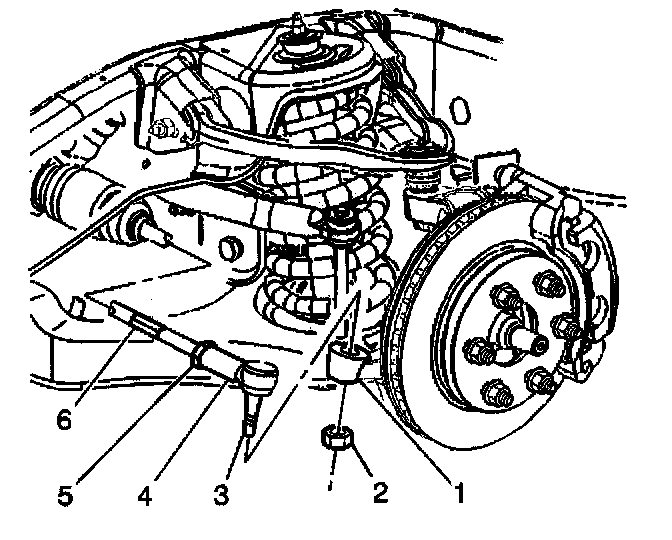 2. Remove the nut (2) from the outer tie rod ball stud (3).