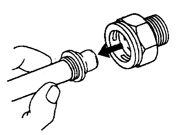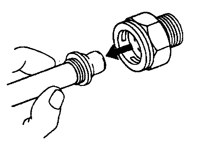 11. Do not use the plastic cap on the cooler line in order to install the cooler line into the fitting.