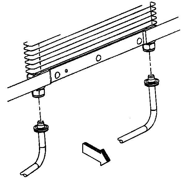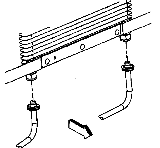 11. For vehicles equipped with an auxiliary oil cooler, remove the oil cooling lines from the frame rail.
