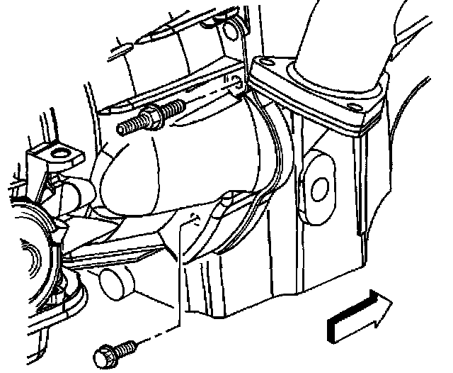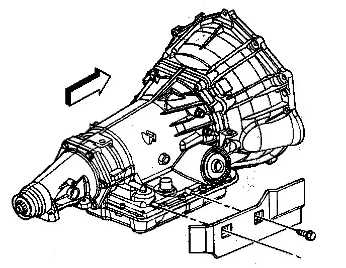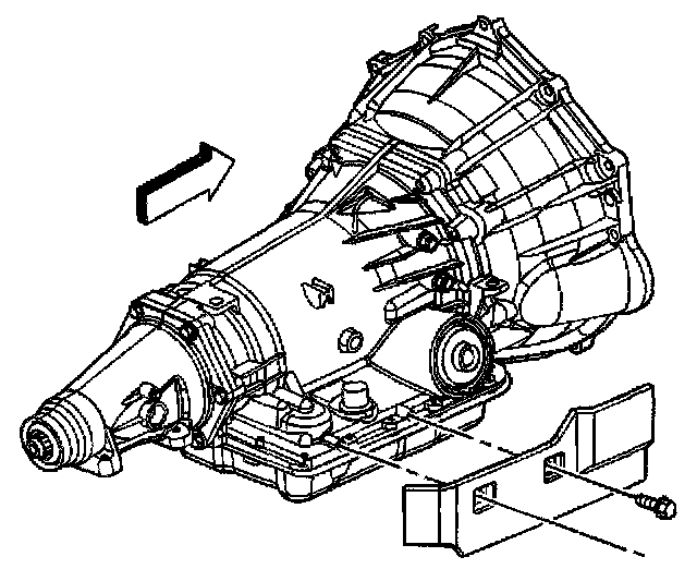 11. Install the two bolts securing the heat shield to the transmission.