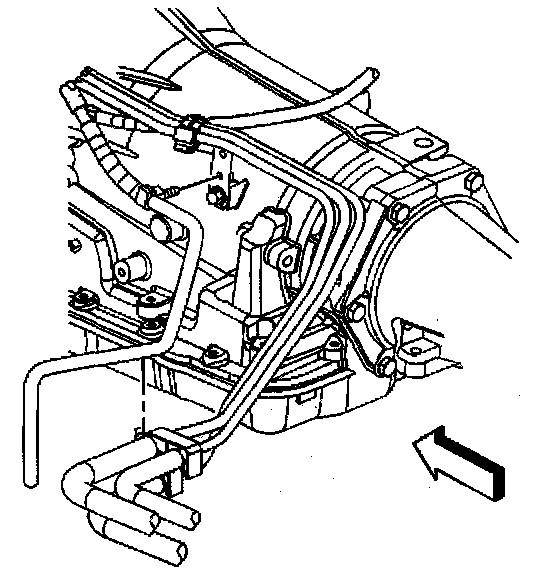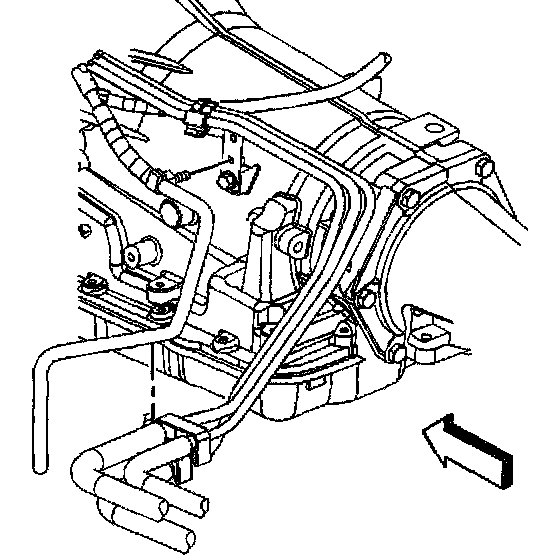 10. Install the transmission vent hose, fuel lines, and the wiring harness to the transmission.