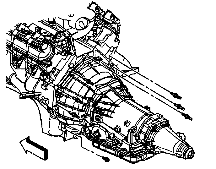 28. Remove the transmission from the vehicle while simultaneously removing the fluid level indicator tube.