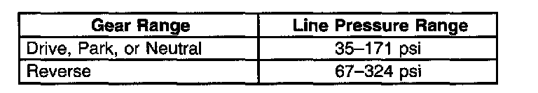 Line pressures are calibrated for two sets of gear ranges-Drive-Park-Neutral, and Reverse. This allows the transmission line pressure to be appropriate for different pressure needs in different gear ranges: