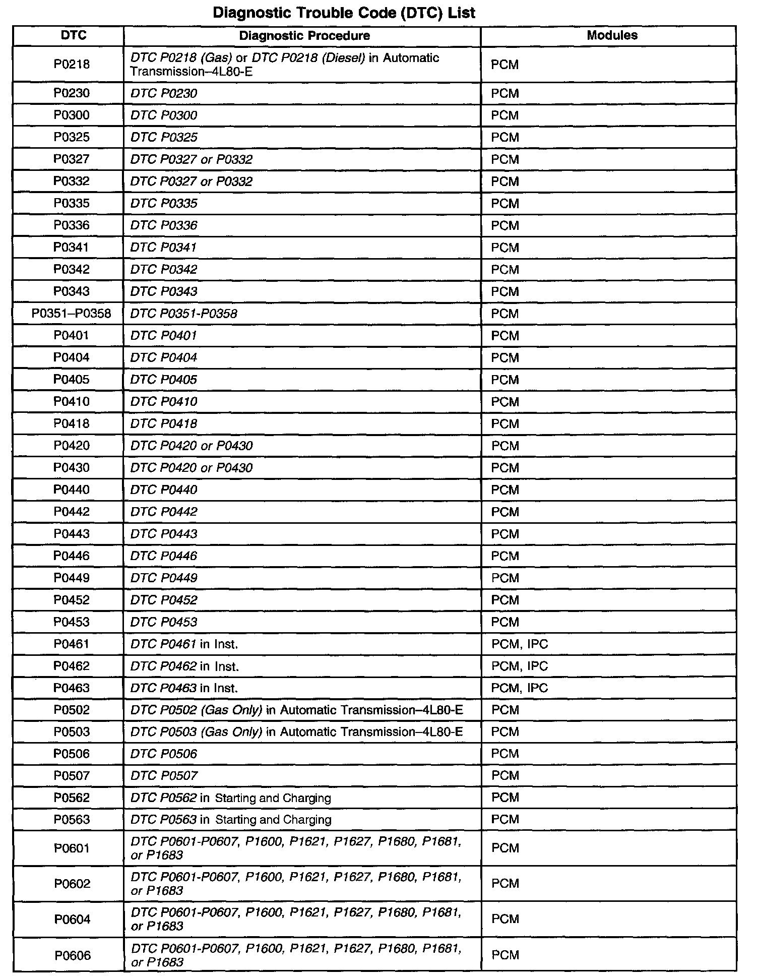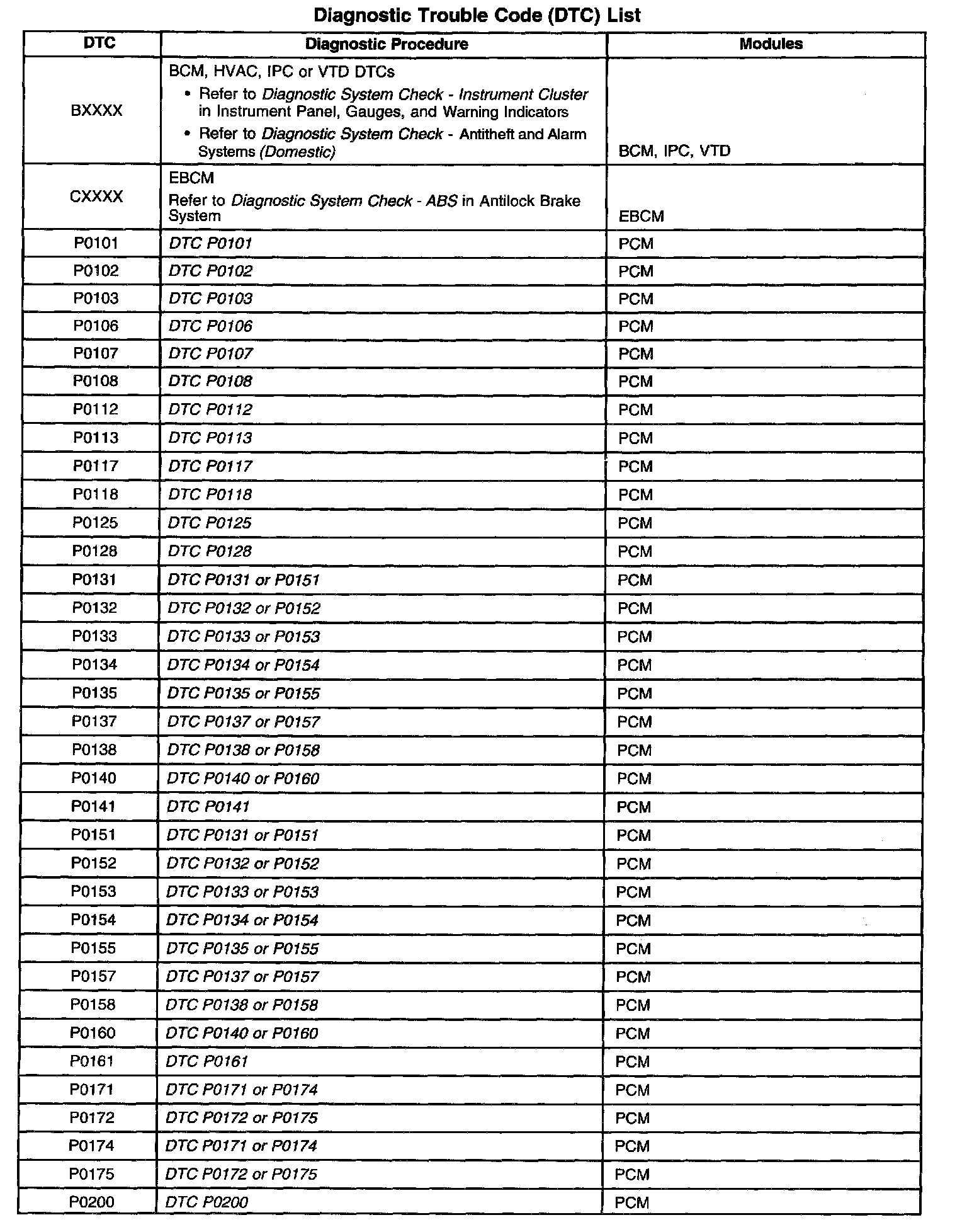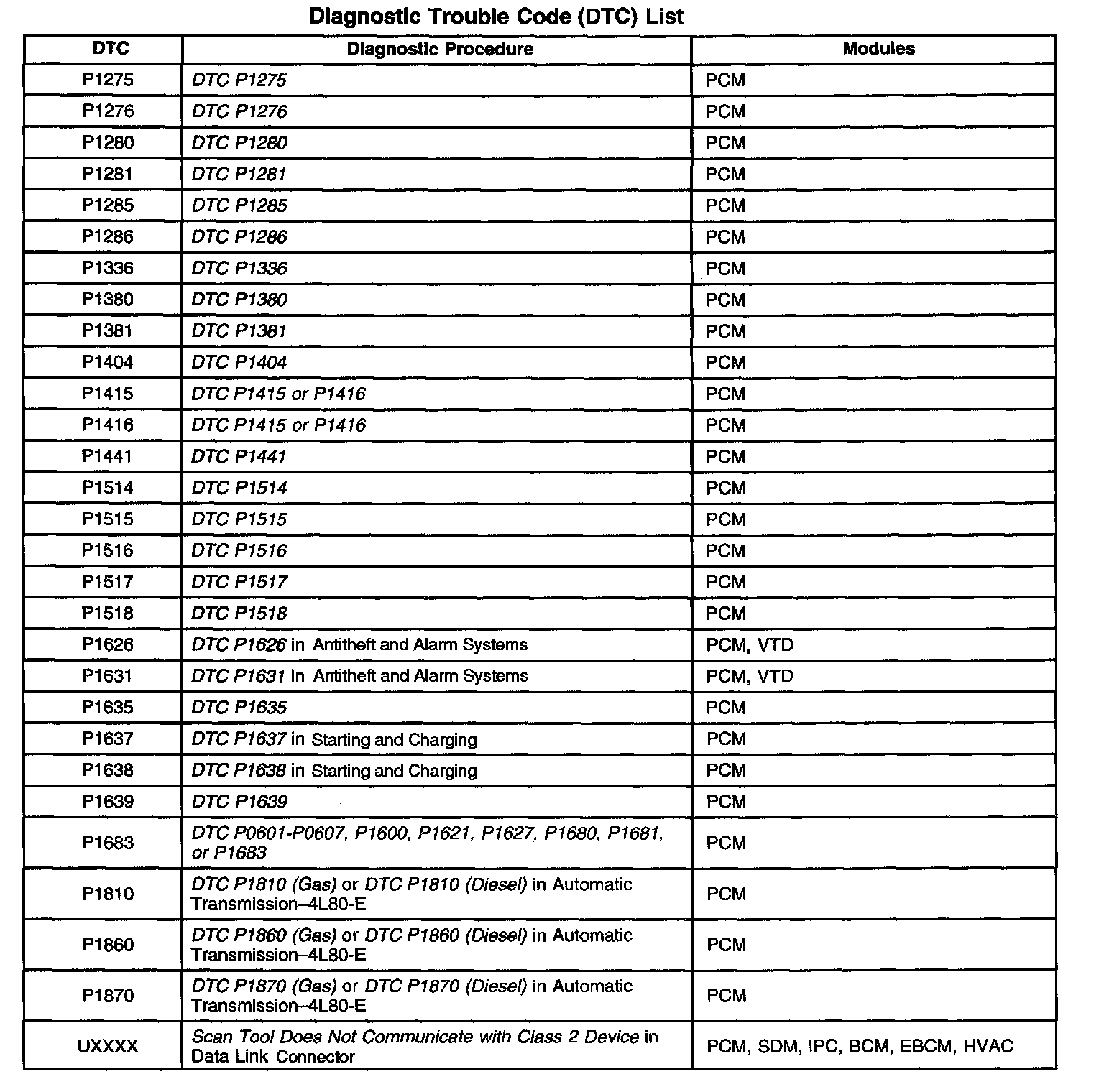 A L L Diagnostic Trouble Codes ( DTC )
