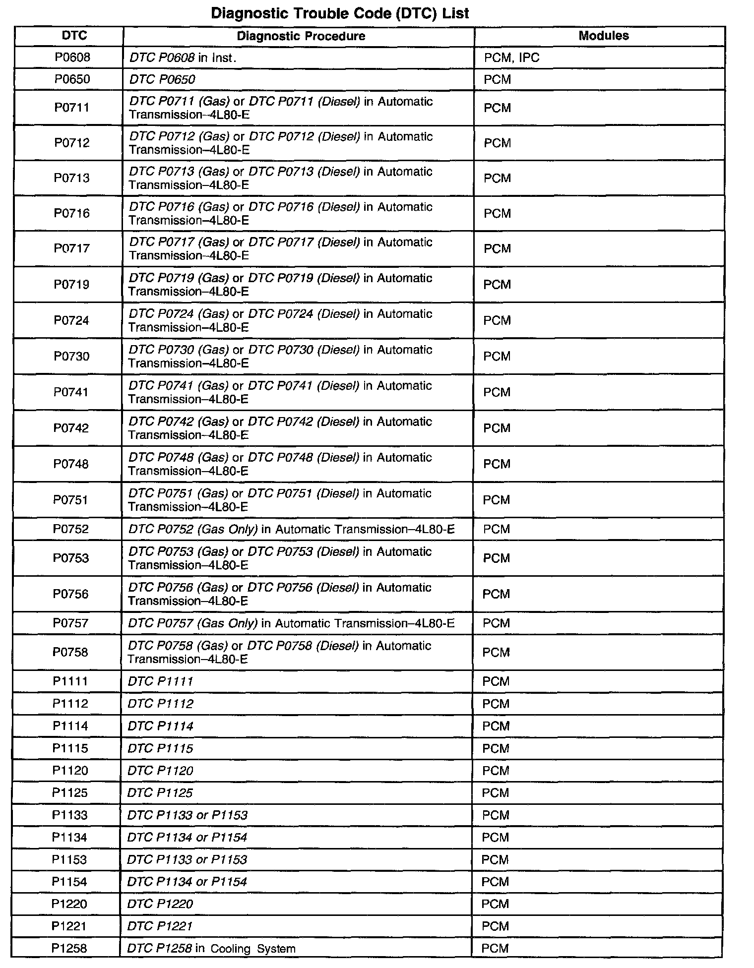 Diagnostic Trouble Code List/System