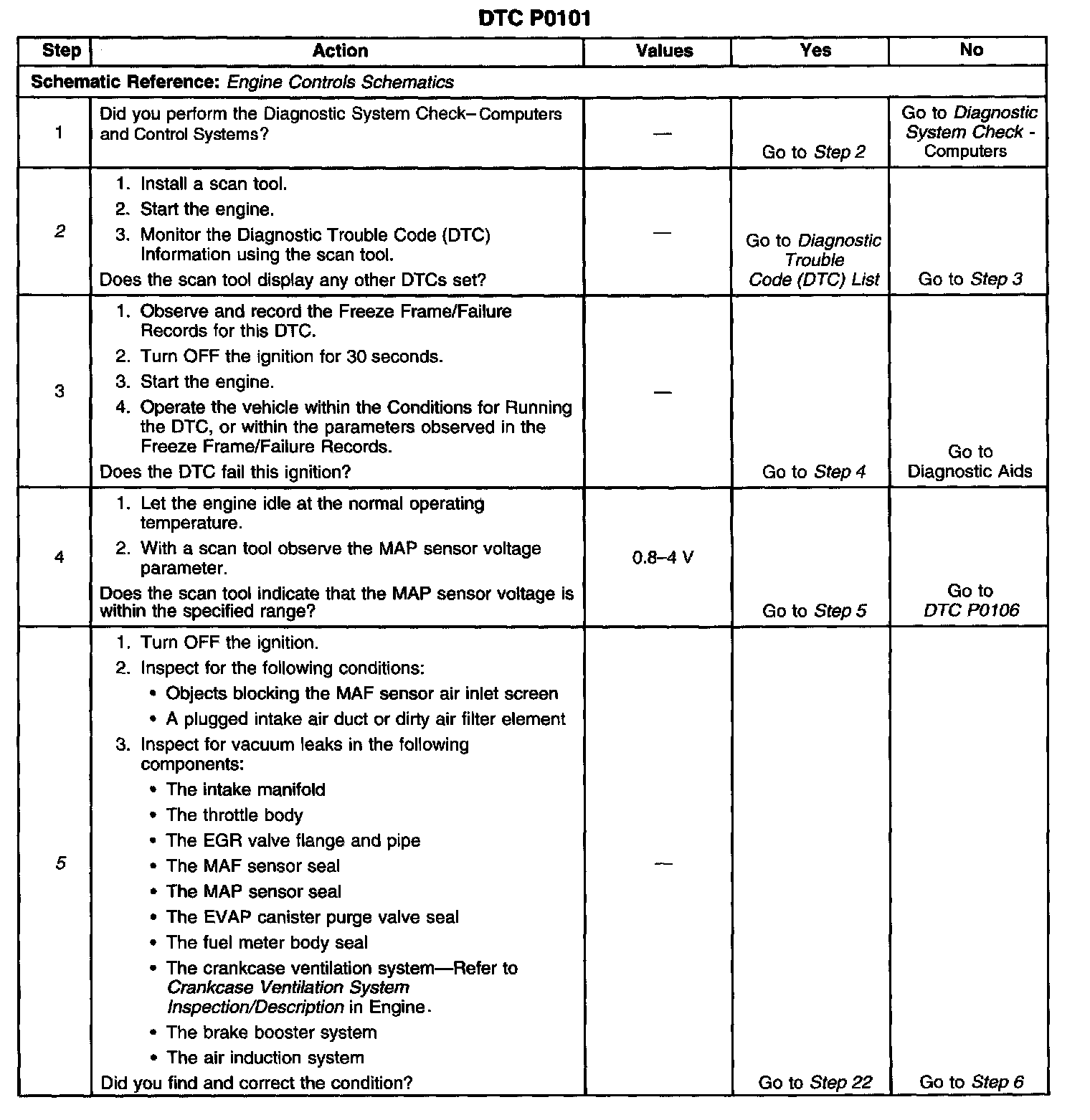 5. Any unmetered air entering the engine may cause this DTC to set. This step eliminates any conditions which can cause a DTC to set with a normally operating MAF sensor.