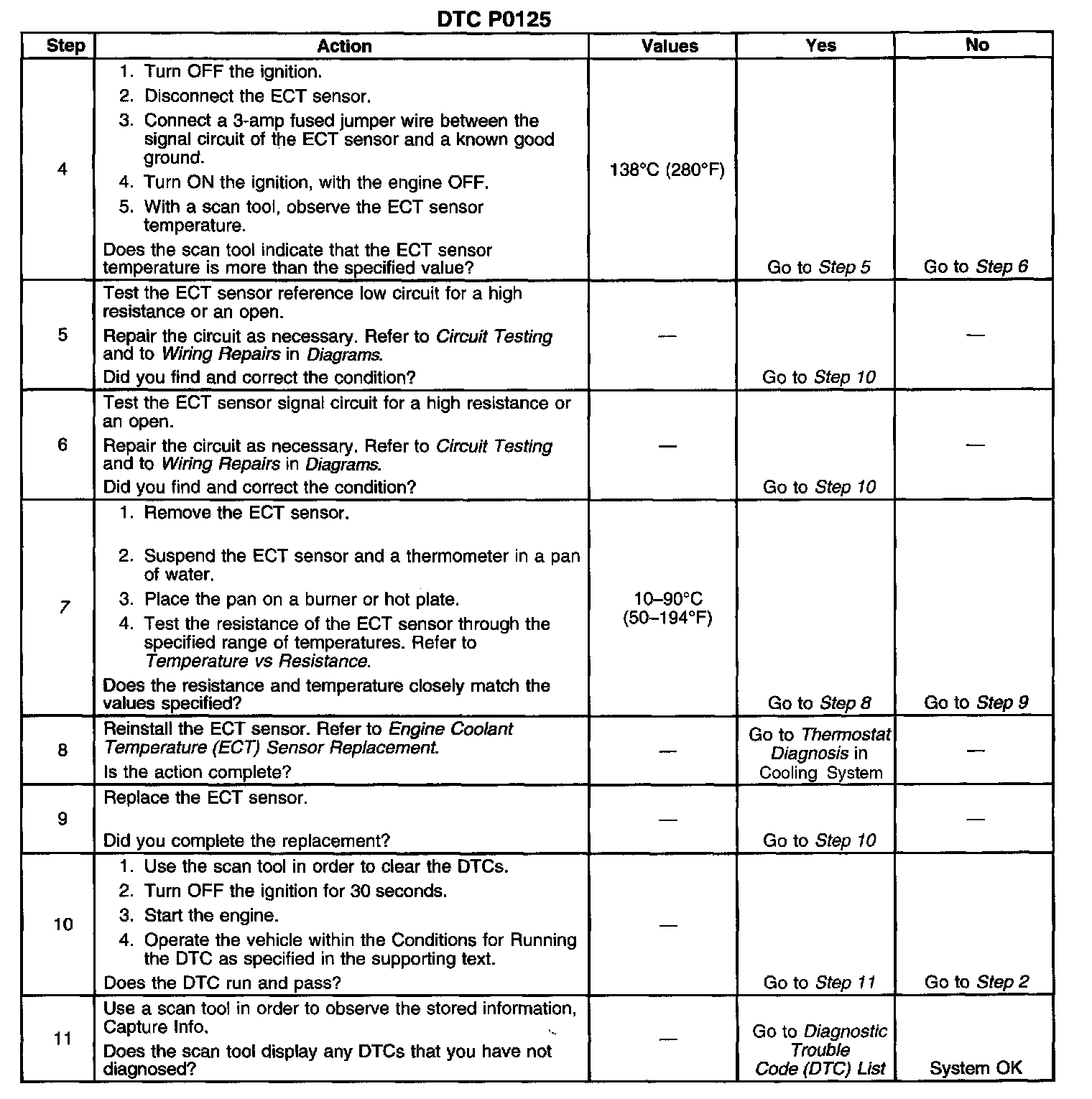 DTC P0125 is designed to detect a skewed ECT sensor or a faulty thermostat.