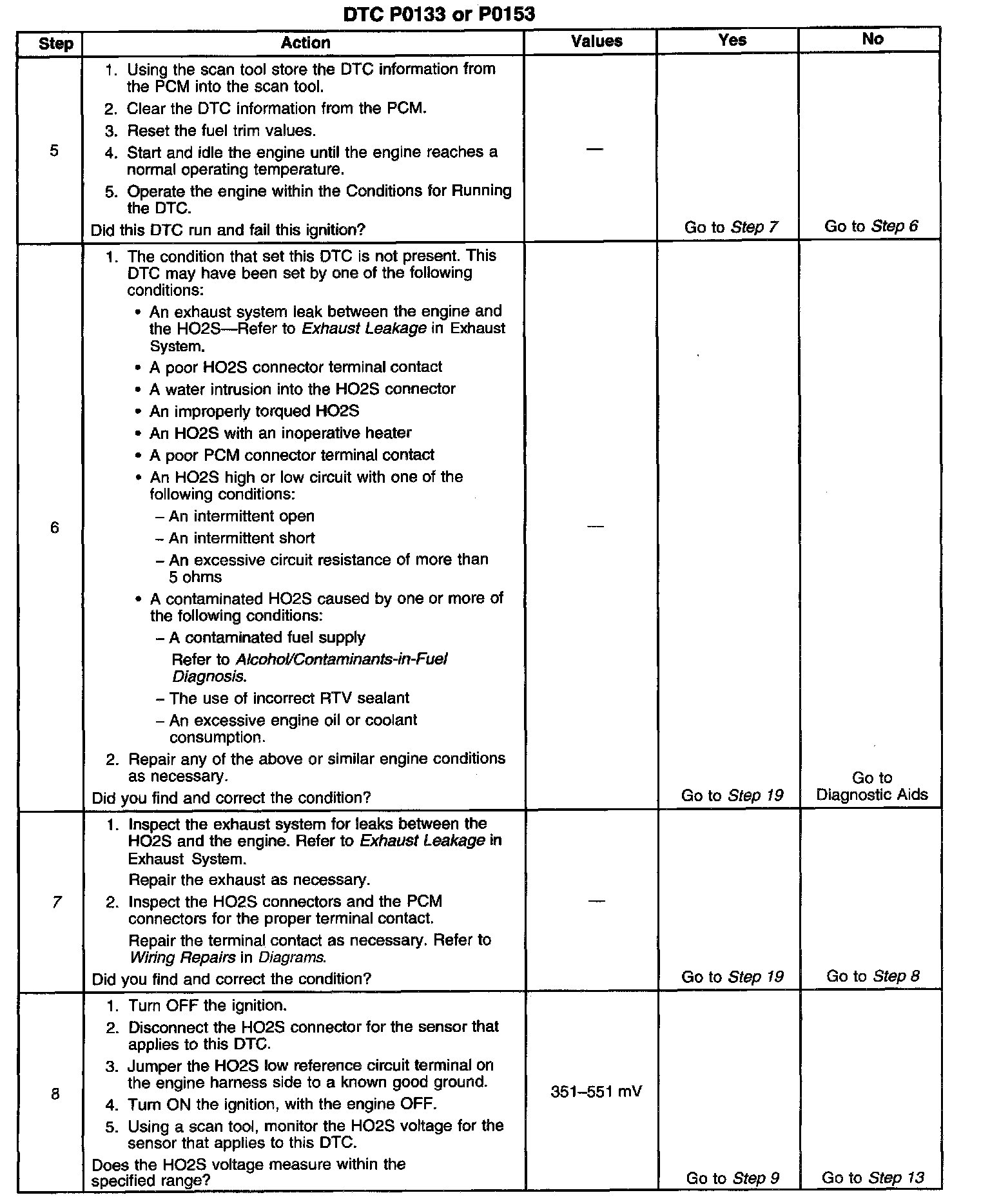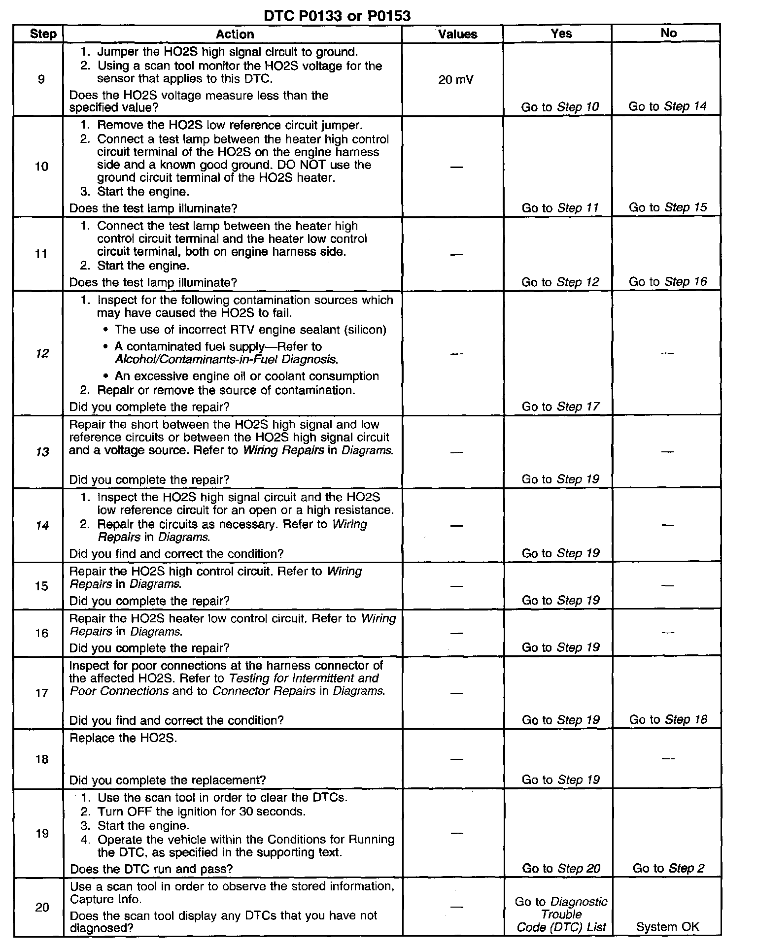 14. It the voltage observed in step 9 is not below the specified voltage, a high resistance high or low circuit is indicated.