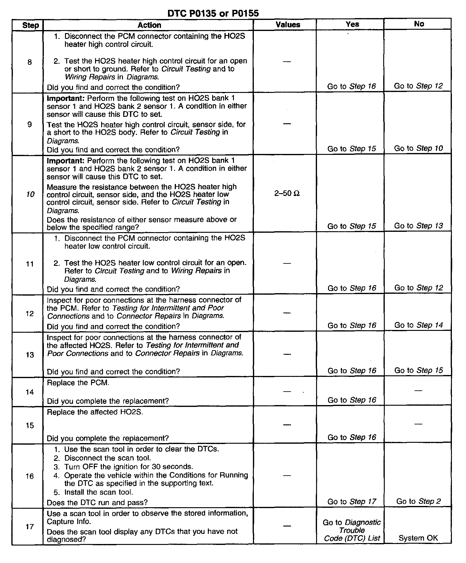 ^ An oxygen supply inside the HO2S is necessary for proper operation. The HO2S wires provide the supply of oxygen. Inspect the HO2S wires and connections for breaks or contamination. Refer to Heated Oxygen Sensor (HO2S) Wiring Repairs in Diagrams.