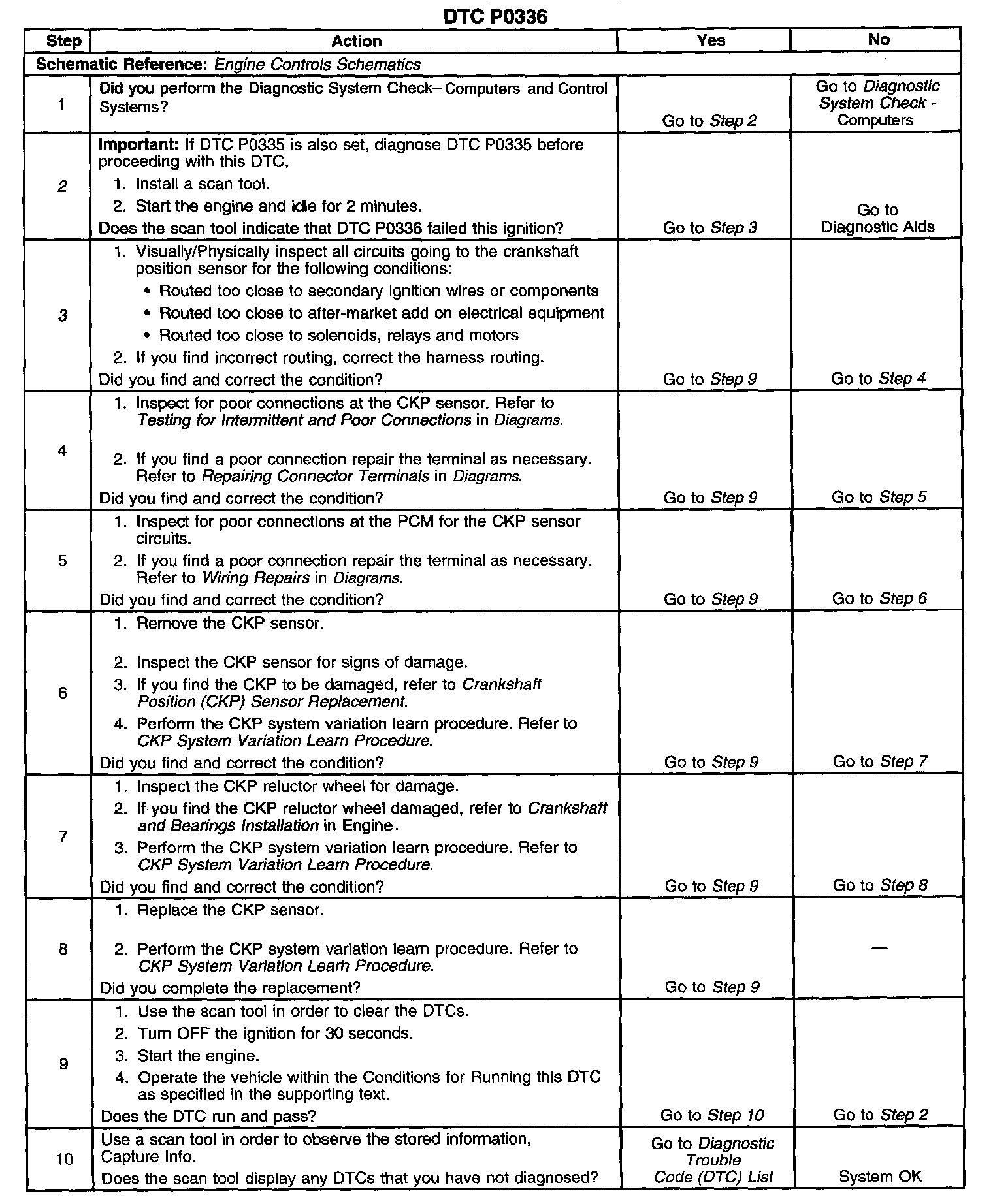 ^ Excess crankshaft end play will cause the CKP sensor reluctor wheel to move out of alignment with the CKP sensor. This could result in any one of the following conditions: