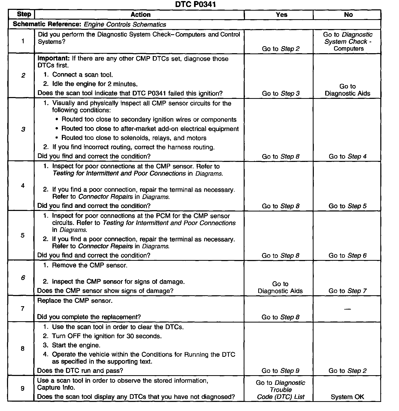 6. Damage to the face of the sensor could indicate foreign material passing between the CMP sensor and the reluctor wheel. This condition would cause this DTC to set. Damage to the reluctor wheel would affect the CMP sensor output.
