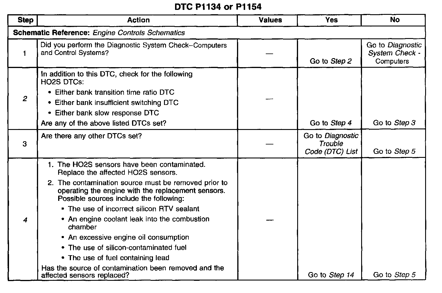 2. When DTCs P1134 and P1154 are set at the same time, this is a good indication that a fuel contamination condition is present.