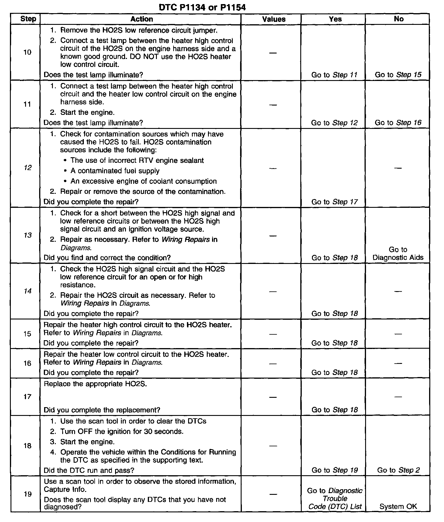 The numbers below refer to the step numbers on the diagnostic table.