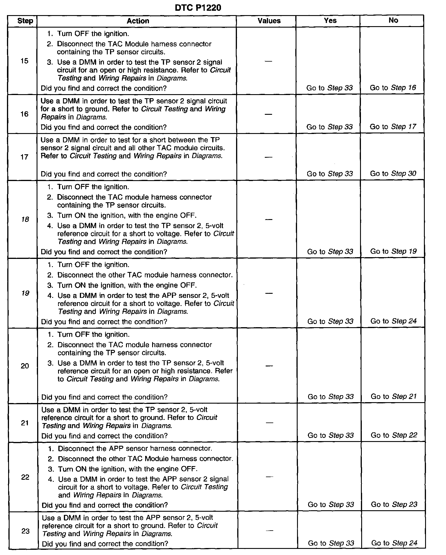 18. The TP 2 sensor and the APP 2 sensor share a common 5-volt reference. The 5-volt reference circuits are connected internally within the TAC module. Disconnecting the TAC module will isolate the 5-volt reference circuits.