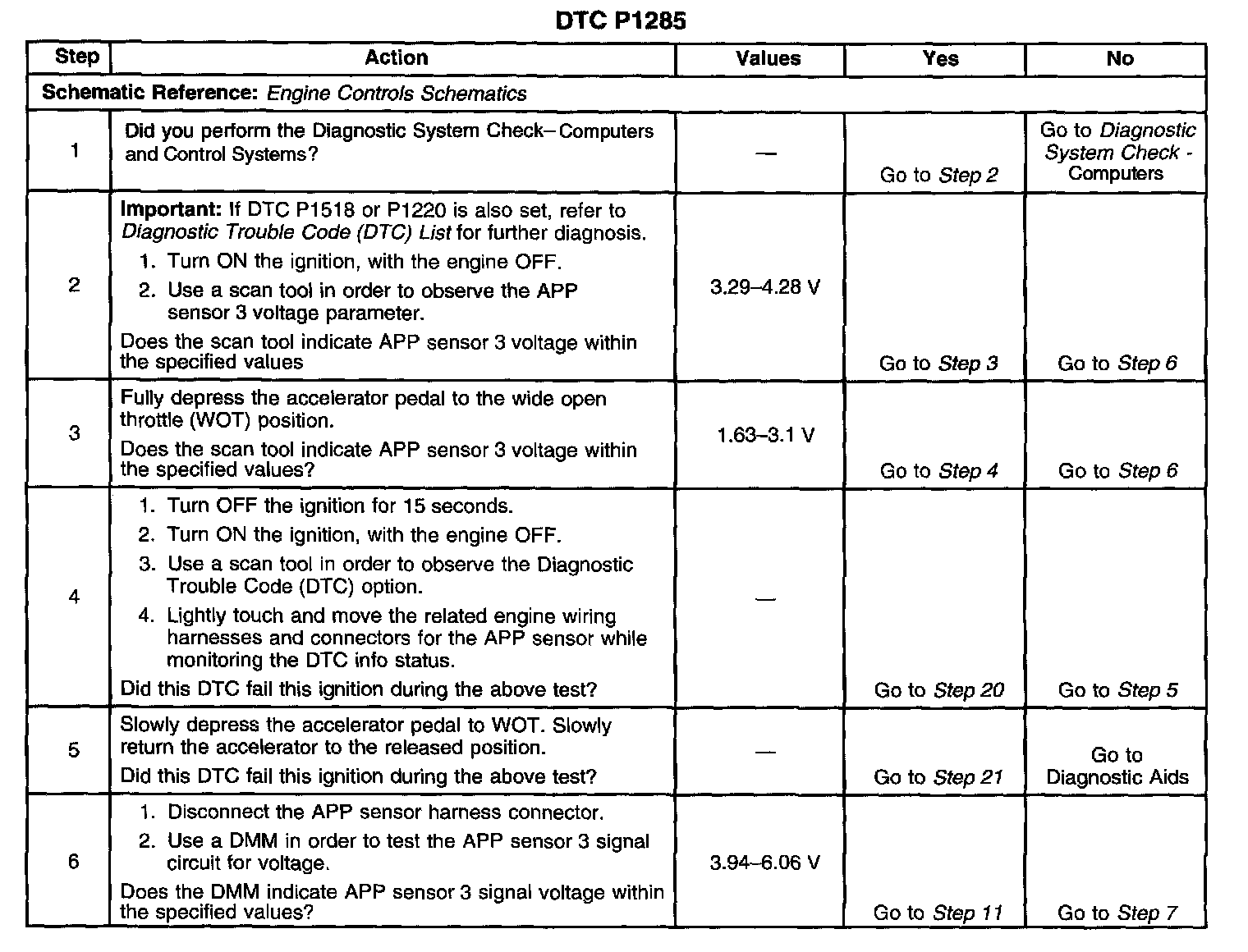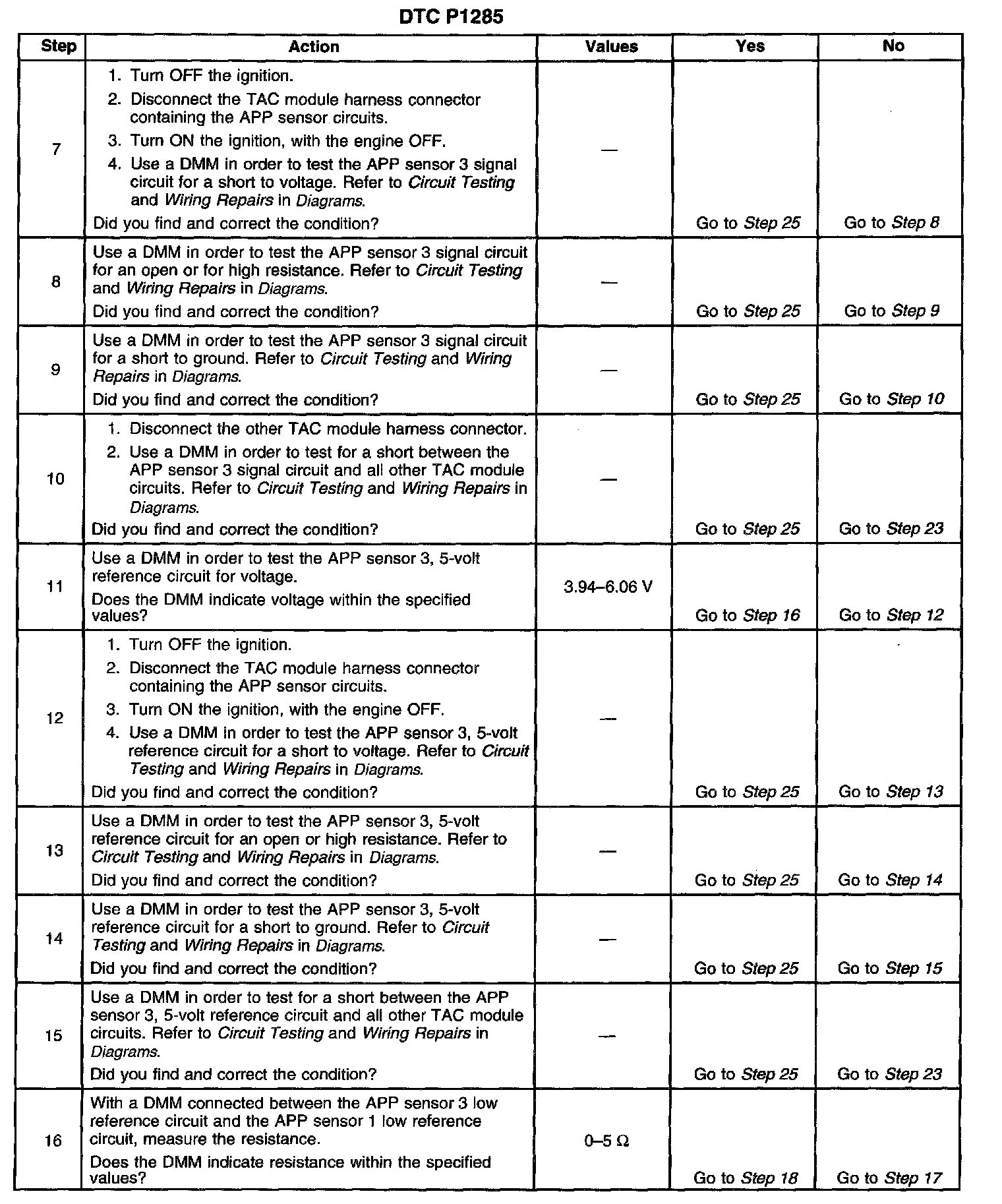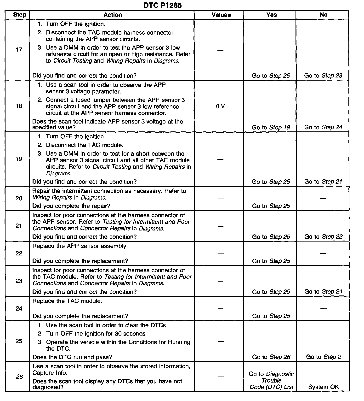 ^ When the TAC module detects throttle movement with a DTC P1285 set, a DTC P1286 also sets.