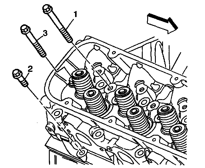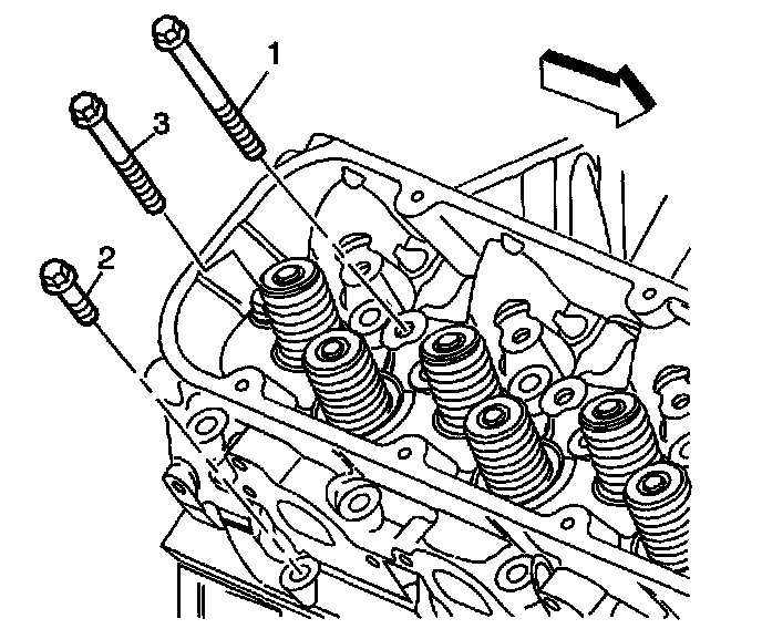 9. Remove and discard the cylinder head bolts (1, 2, and 3).