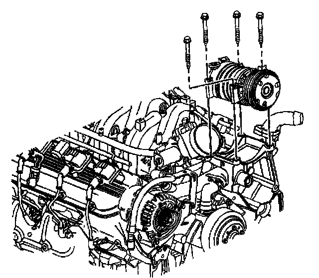 12. Remove the Air Conditioning (A/C) compressor bolts.